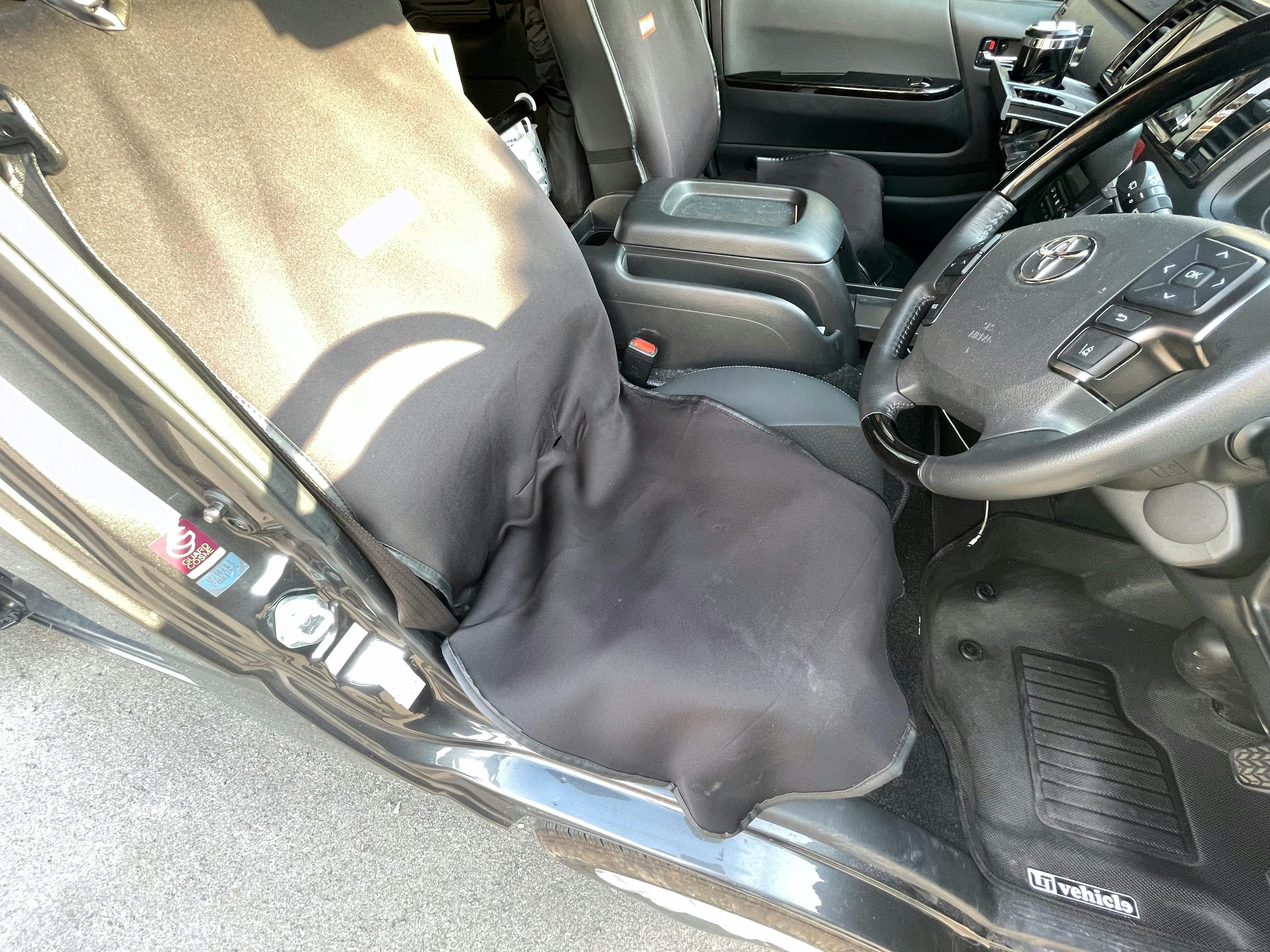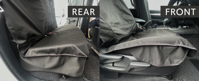 フロントシートカバーほとんどの車両で座席面をフルカバーします。(一部の車両では覆いきれない部分が生じる可能性があります。)