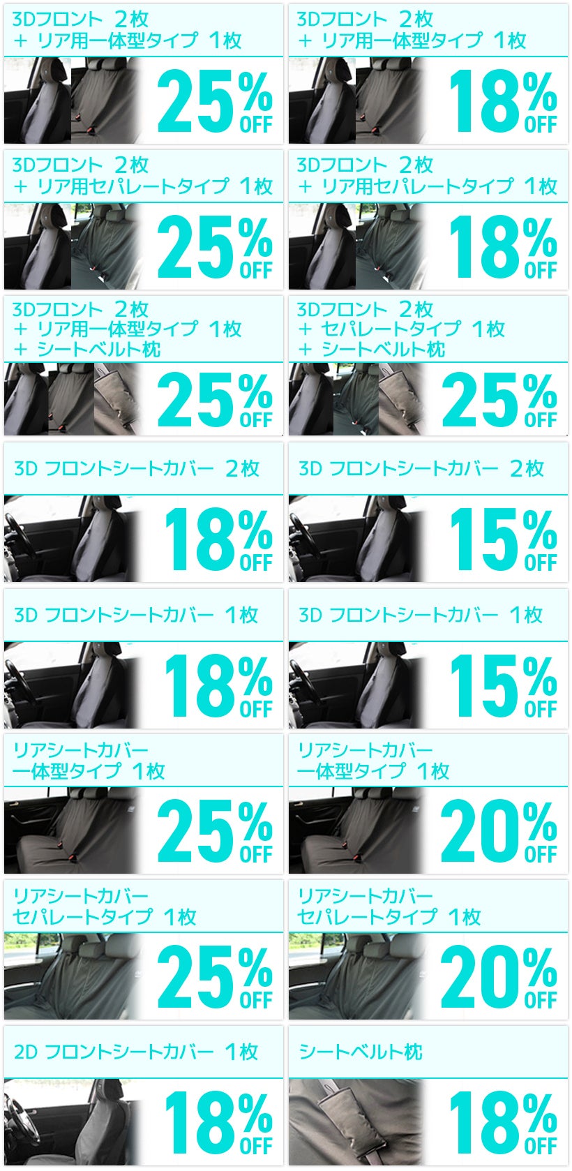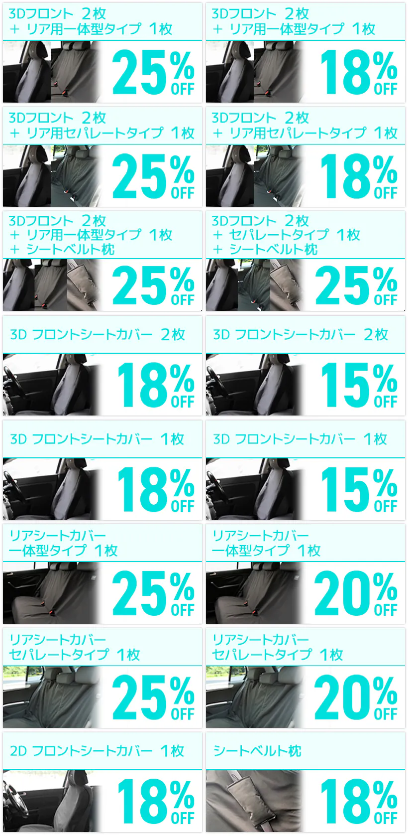 ※フロントシート用は2Dをご希望で、リアシート用を含めた1台分をご希望の場合はお手数ですが、フロント用とリア用をそれぞれ個別でご選択ください。