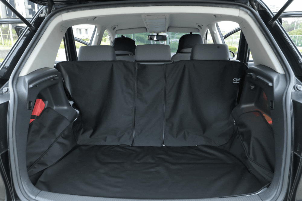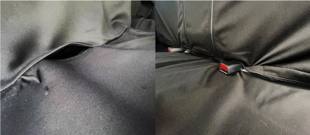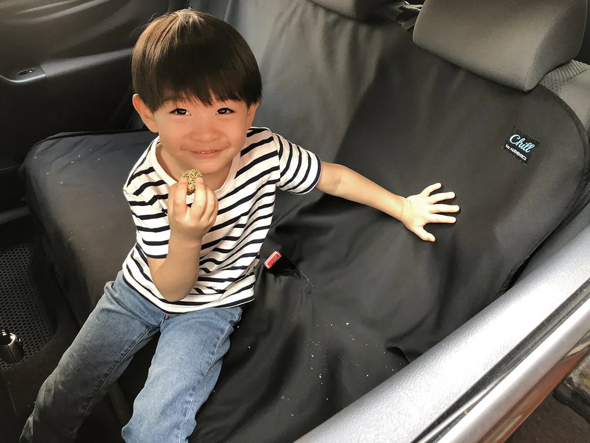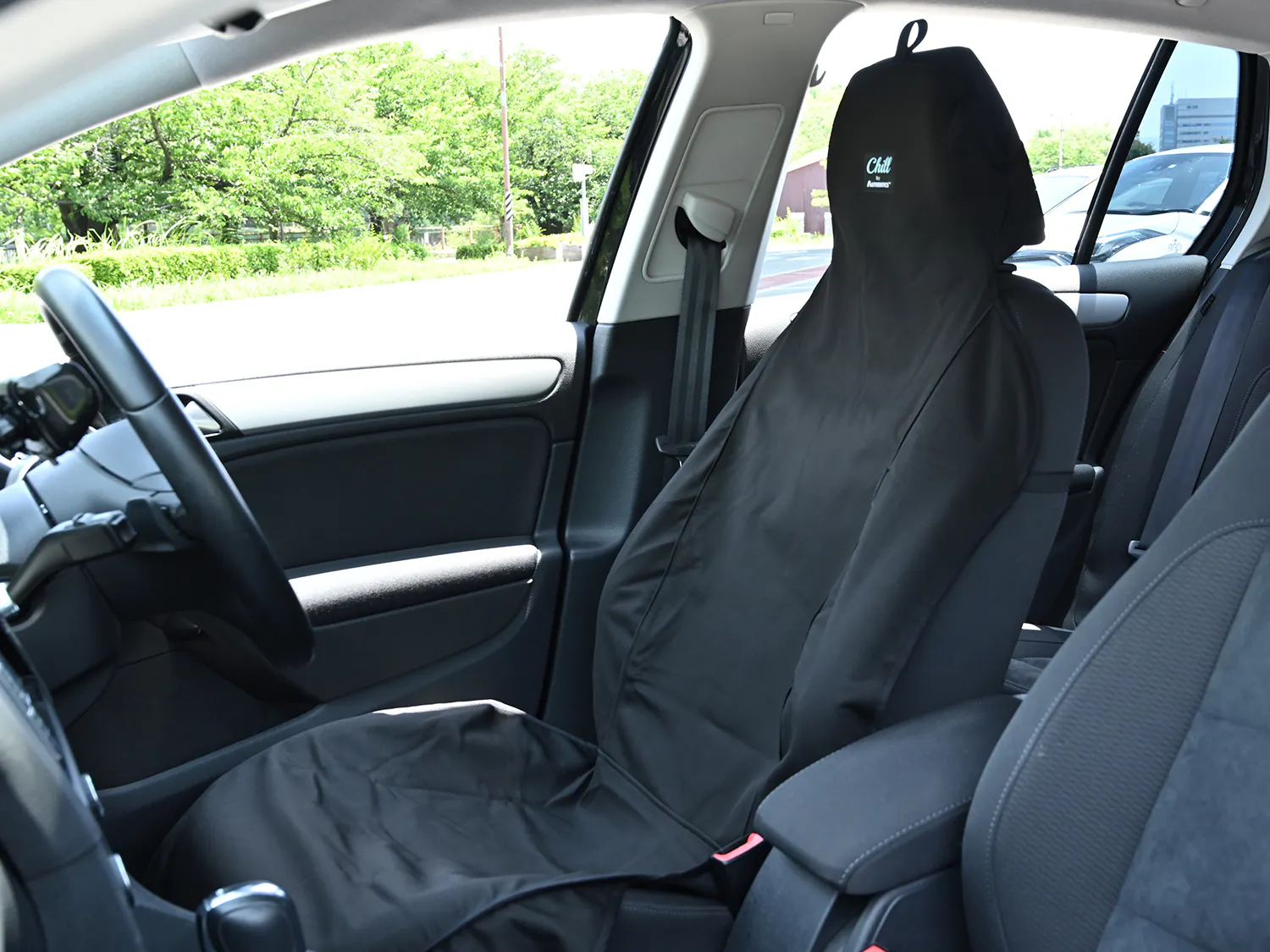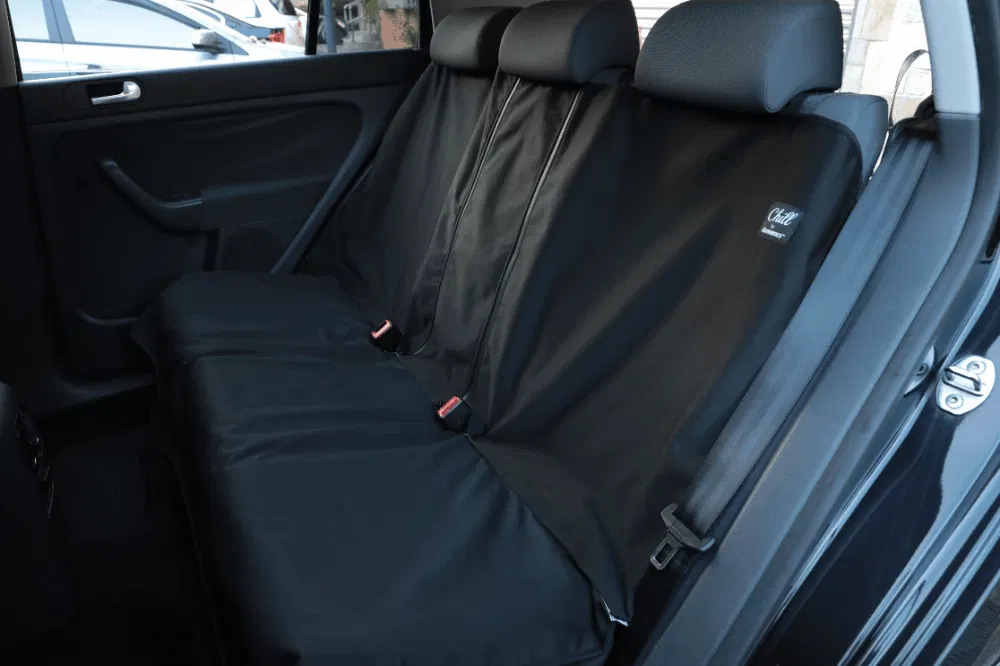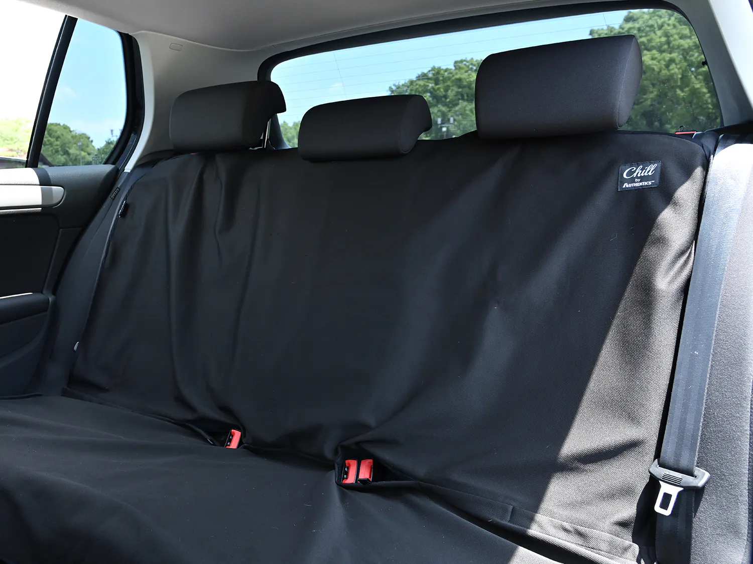 Chillリアシートカバーはシート全面を覆ってシートベルトも装着可能です。