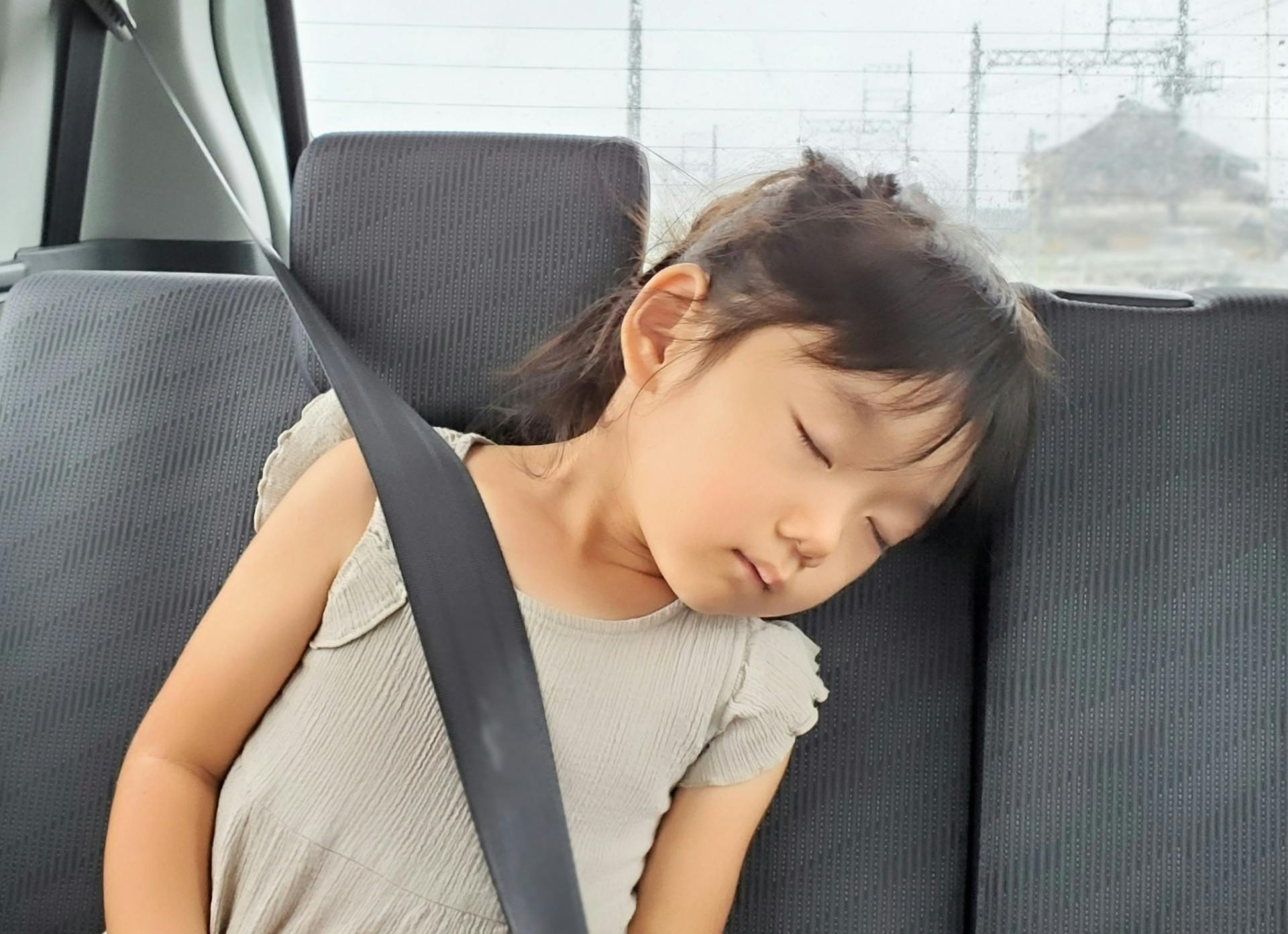 ジュニアシートに座る子供はとんでもない体勢で寝ることもよくあります。