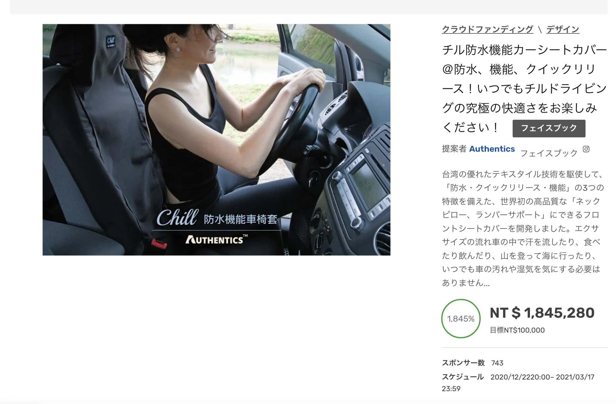 台湾のクラウドファンディンサイトでは743人が購入!
