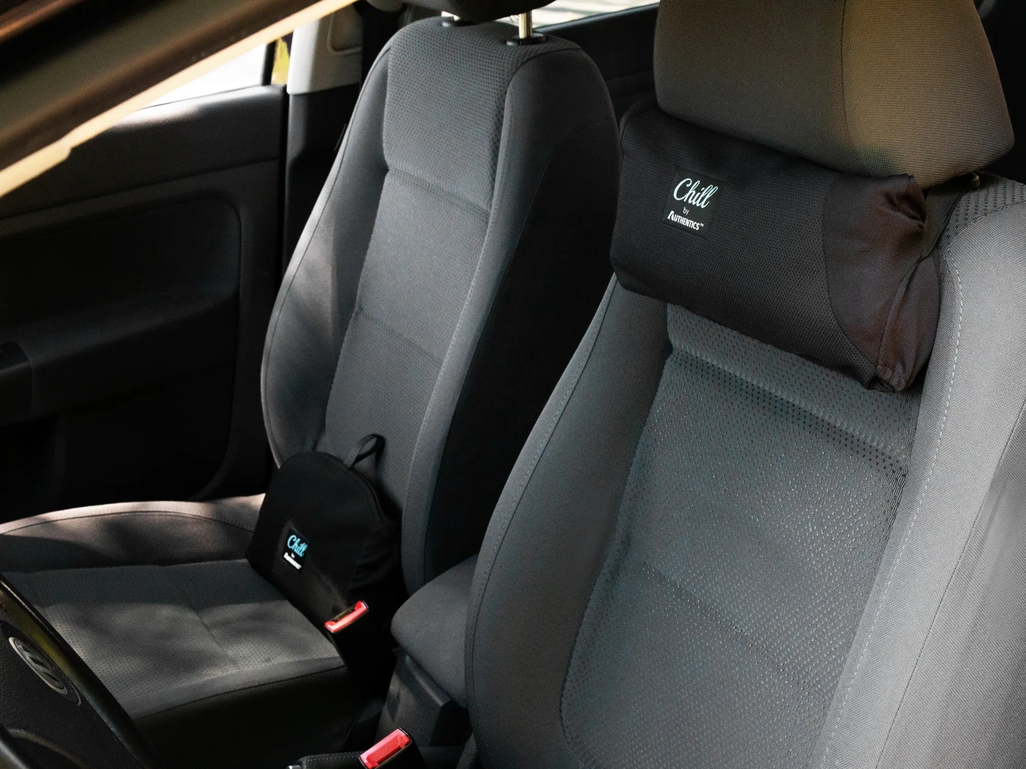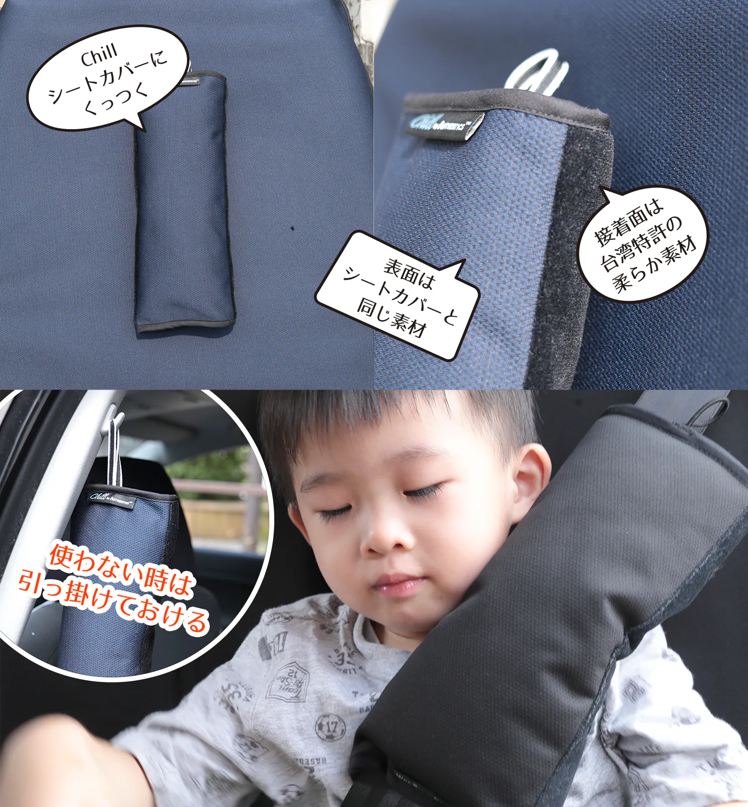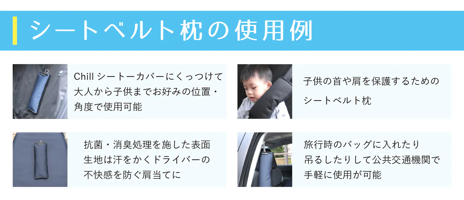 さらにChillシートカバーにくっつくシートベルトピローも開発されました。