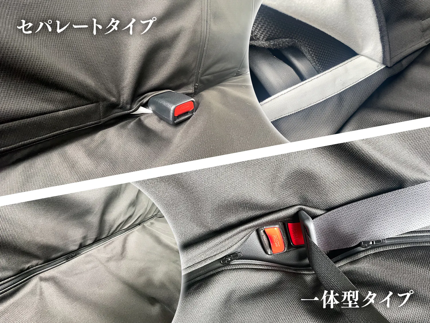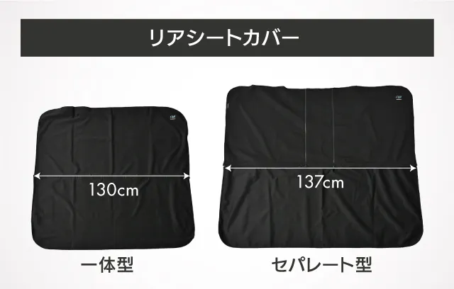 リアシート用は分割なしの一体型と6:4分割式シートに対応するためファスナーを搭載したセパレートバージョン
