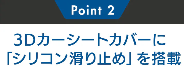 乗り降りのたびにシートカバーがずれるなどのストレスをなくすため3Dシートカバーの裏面には無臭のシリコーン素材の滑り止めを搭載しています。
