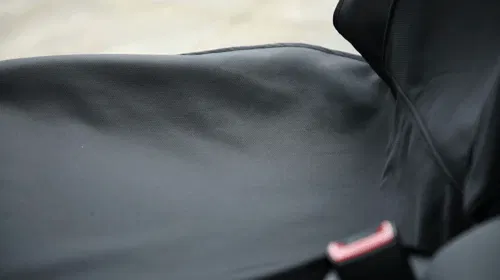 市場にある防水シートカバーはウェットスーツの素材を使用しているものが多く、防水性には問題ないものの、乗降時にズレてしまったりしているのもよく見かけます。