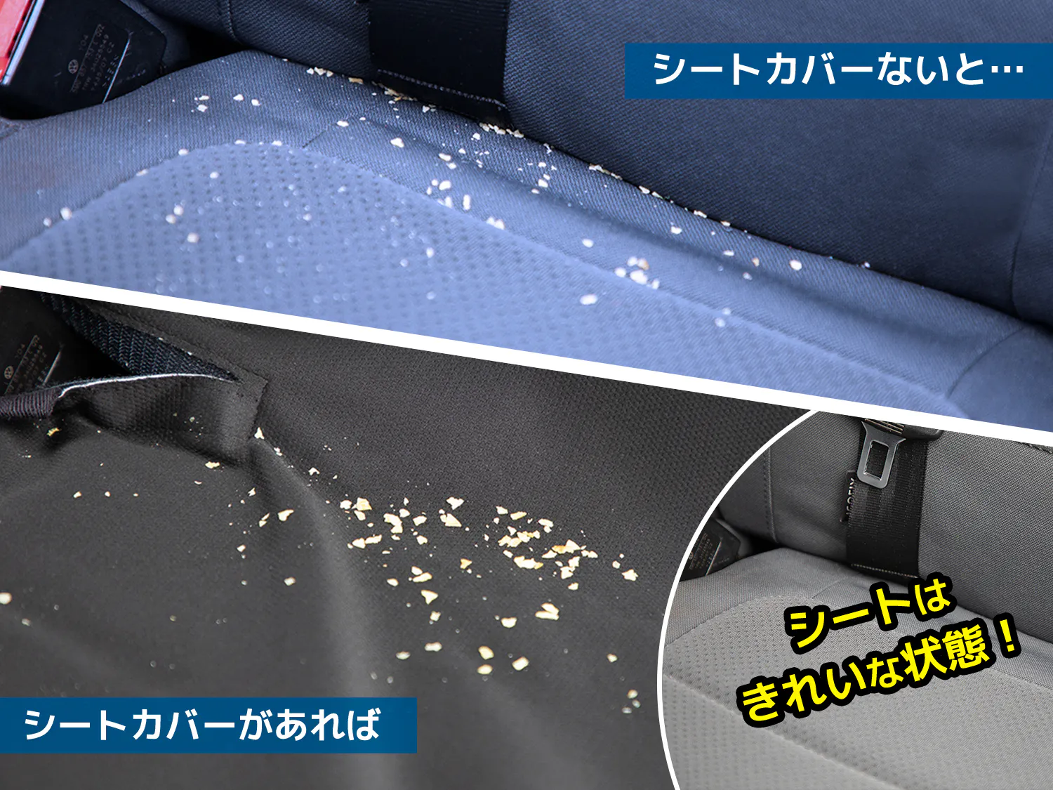 こういったことはよくある事ですが、シートが汚れてしまうとクリーニングは容易ではないため、起こってしまってから後悔する前に対策を検討する必要があります。