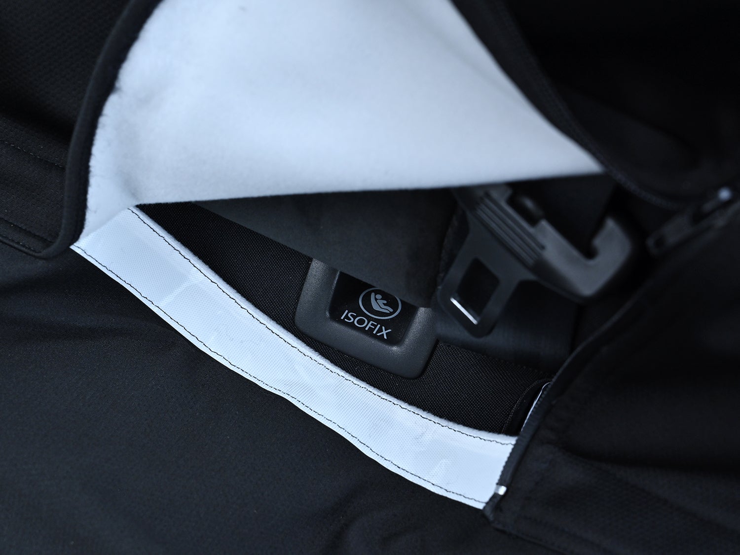 リアシートカバーはチャイルドシート設置用のISOFIXコネクタに接続する事ができます。