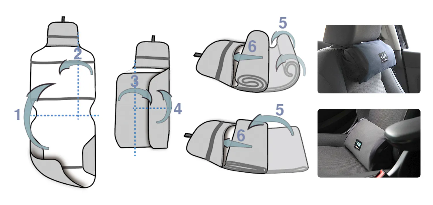 素早く外して折り畳むと、首枕や座面と背もたれの間にできる隙間を埋めて腰のサポートとしても素速く簡単に便利で快適なドライブをサポートします!