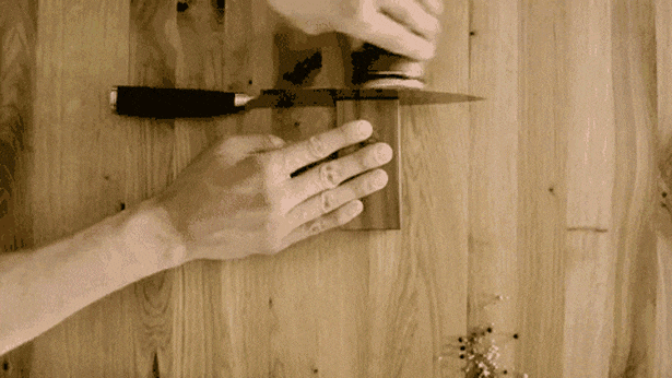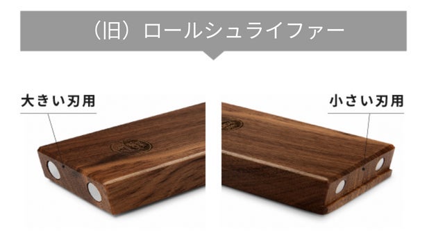 一方、ロールシュライファー2のウッドプレートは、ネオジム磁石を内蔵し、表面にシリコンパッドを設置することにより、滑りを防ぎ、包丁をより強靭に固定することが可能になりました。