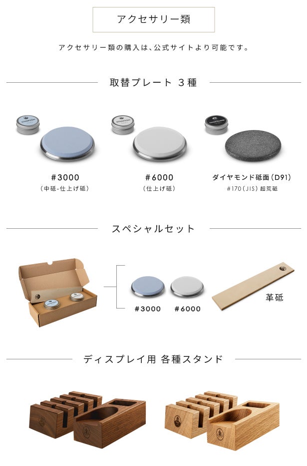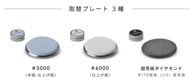 必要に応じてプレートを取替えれば、荒砥 ▷ 中砥 ▷ 仕上げ砥 の順に研ぎ進めることが可能です。これも、プロの料理人が日常で使う理由の一つです。