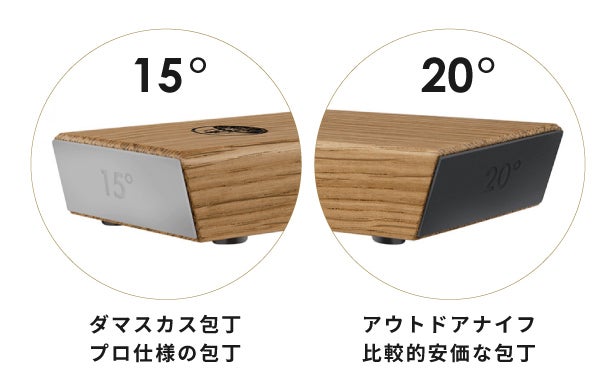 その場合、15°に比べて20°の方が勾配が大きいので、20°に固定する方がより早く刃を削ることが可能です。