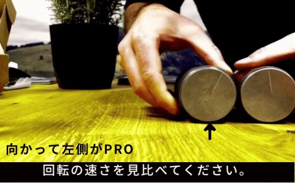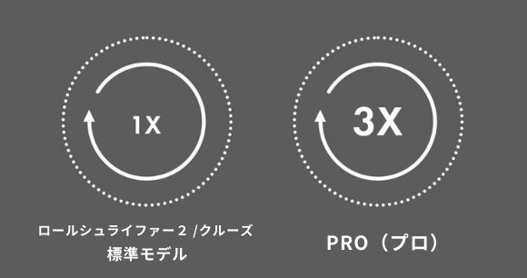 同時にスクロールした時の、回転の速さが明らかに違います。これは、PRO(プロ)だけが備え持つ遊星歯車の働きによるものです。ロールシュライファー2 PRO(プロ)は、標準モデルの3倍速で回転します。