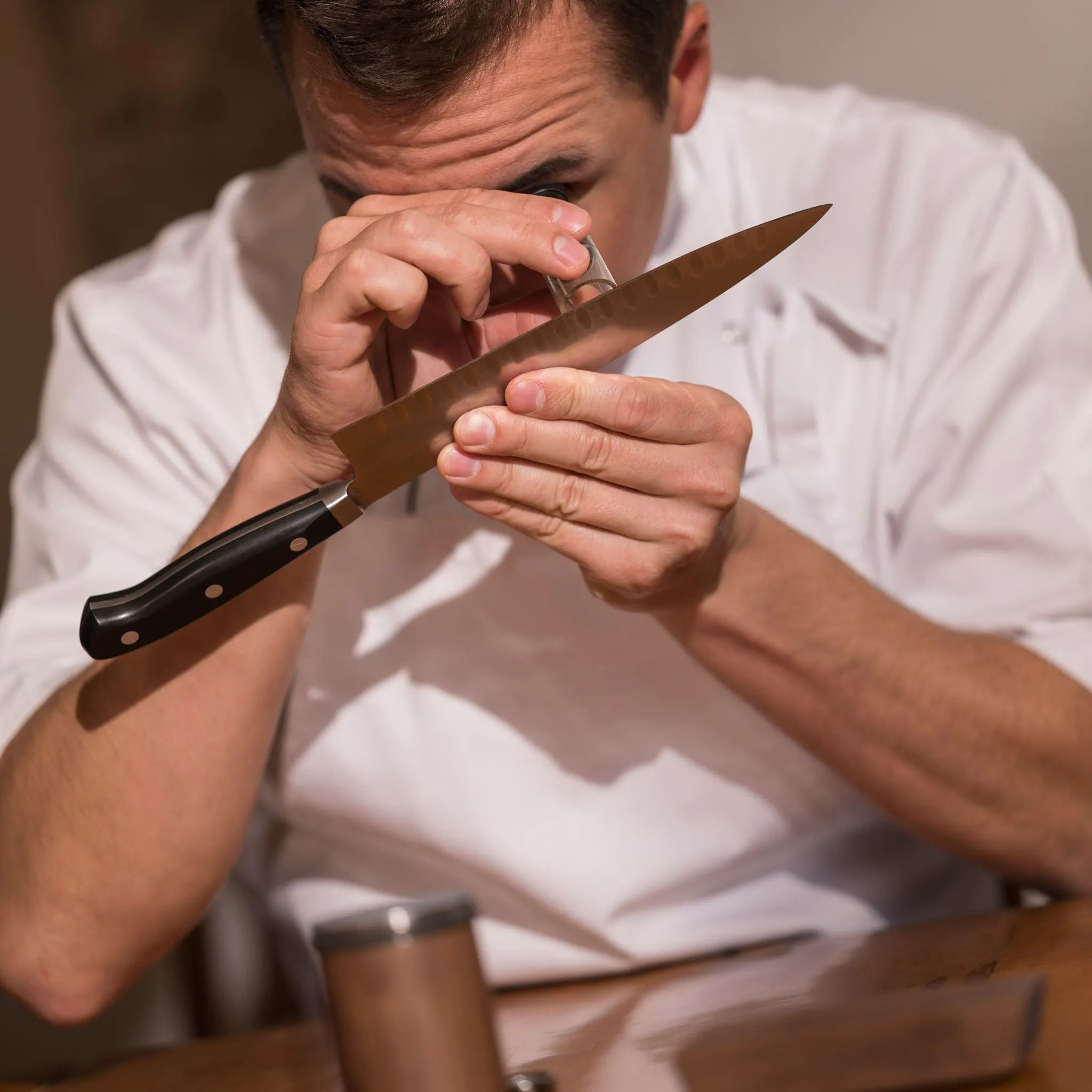 元々、日本のように包丁を鋭く研ぐ文化がなかったヨーロッパで、「研ぎ」を学ぶ手段は少なく、金属加工の技術者である開発者は、「研ぎのメカニズム」について徹底的に分解してみることにしました。