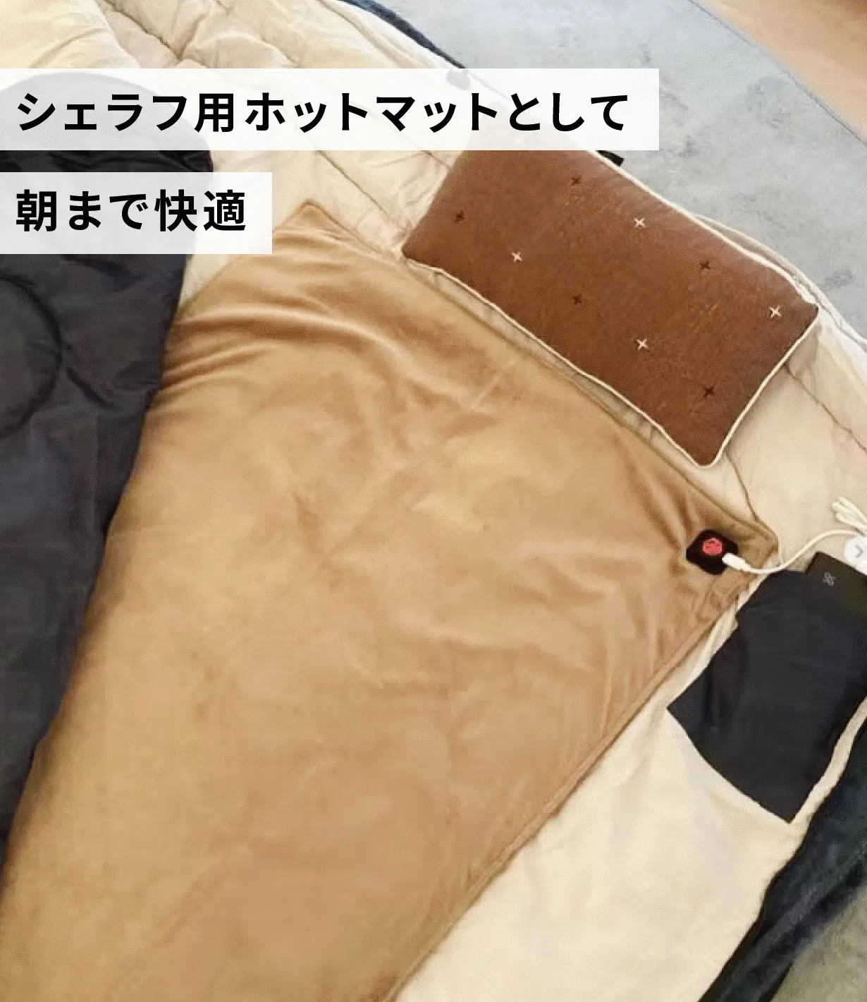 ホットマットGeeはシェラフの底冷え用ですが、電気毛布として膝にかけたり、室内でちょっと冷える夜に使用したり、コンパクトでモバイルバッテリーで使えるので災害の備えにもなります!