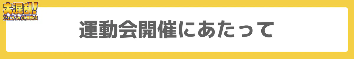 上記の事が守られなかった場合、または実行委員会スタッフが運動会の妨げとなると判断した場合は退場して頂く場合があります。
