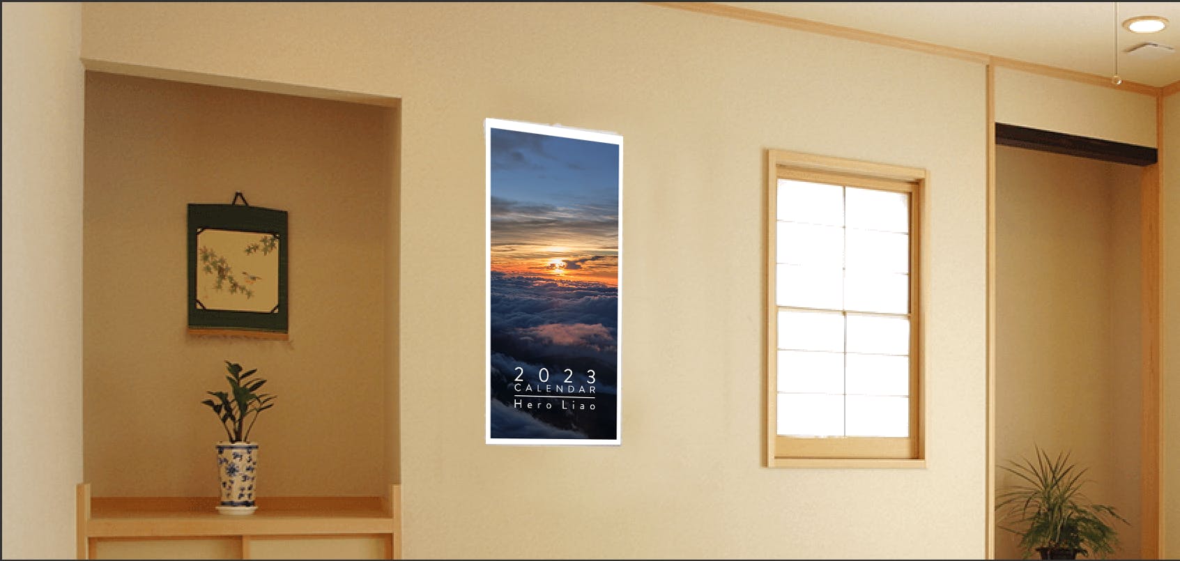 この2023年カレンダーには、私が日本中を旅して撮影した写真の中から、選りすぐりの作品が掲載される予定です。カレンダーの写真は、すべて私が自分で撮影・現像したものです。つまり200%オリジナル作品! 作品は巻物のような寸法で印刷されているので、掛け軸のように和室に飾ってもいいし、シンプルなデザインなので洋室にも合います。