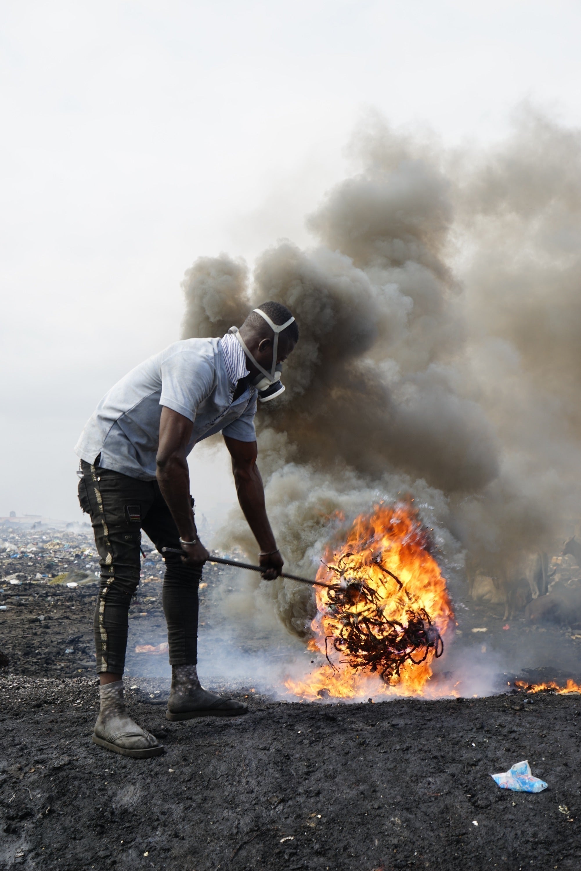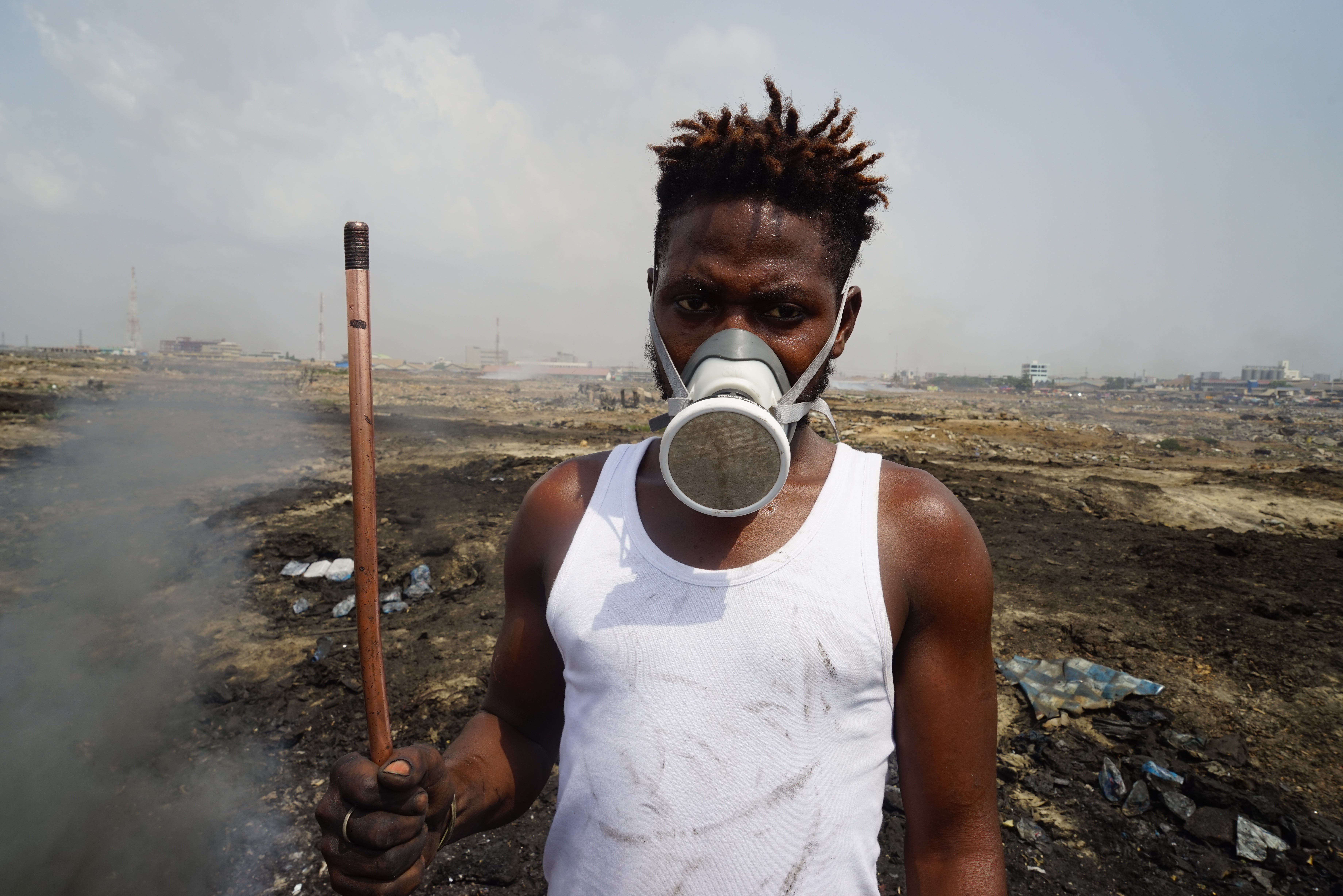 アグボグブロシーでは、1日わずか500円の日当で先進国が捨てた電子機器を必死に燃やしながら生きる人々がいます。彼らは、燃やす過程で大量のガスを吸い込み、癌などの病気で30〜40代でこの世を去ると言われています。
