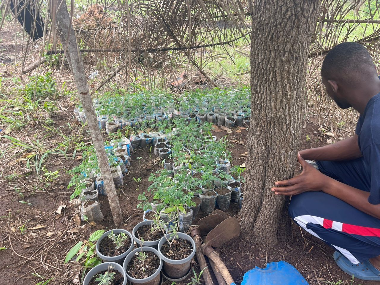もちろん土壌に直接植え込む方法もありますが、この方法の方が保水性が高く、発芽しやすいそうです!ピュアウォーターの飲み終わったゴミを使ったガーナならではの苗の作り方に驚きと納得です。