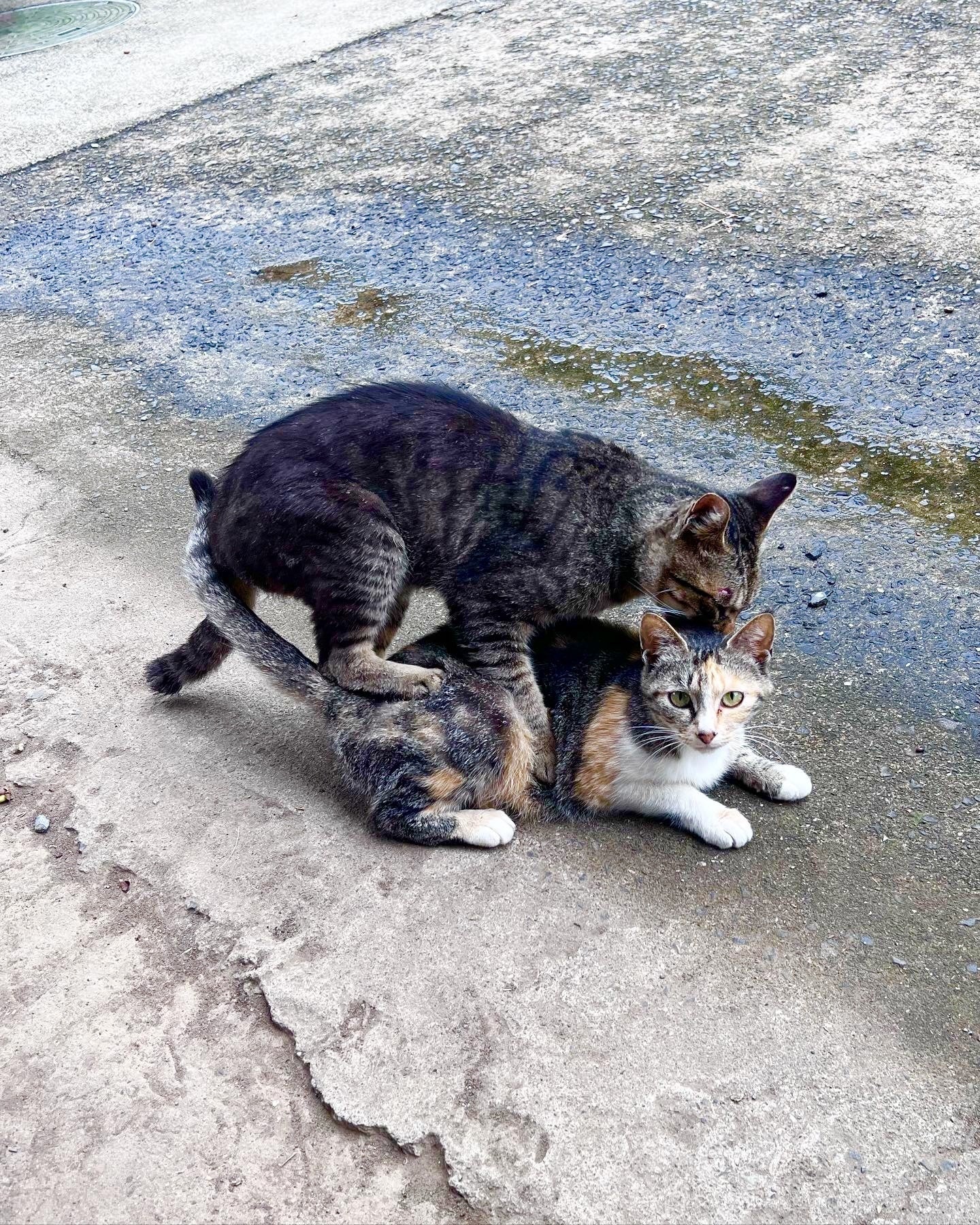 他の猫と交わらなくても、親子や兄弟間でも見境なく交尾をし、ねずみ算式に増えていきます。まだ肌寒い1月から、交尾の姿を見かけることもしばしばです。
