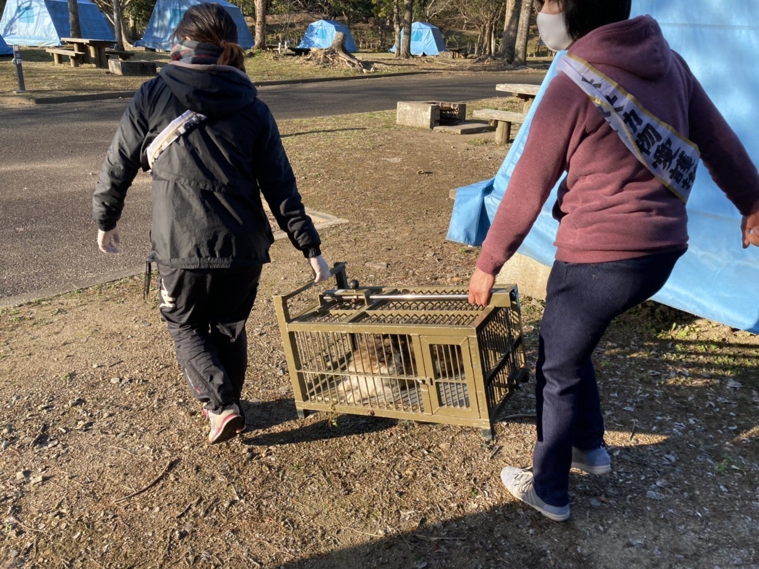 重い古式の捕獲器は2人でないと運べません活動を始めたのは2018年末。2022年までに約600頭のTNRを実施、サポートしています。最初の1年余りは、娘(かわたにゃんず店長)と2人で、約80頭のTNRをおこないました。