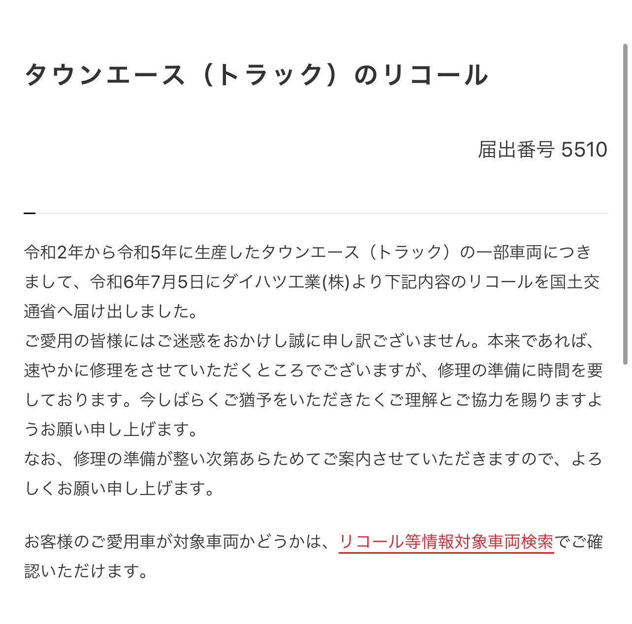 水面下で準備を進めているスペイカーのベース車である、TOYOTAタウンエーストラックが、リコール対象となりました。