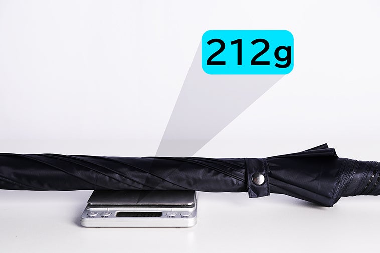 「Aufo Plus」はフルカーボンファイバーと極薄の傘生地を採用しているため、全体の重量がわずか212gで、スマホ並みの軽さを実現します。