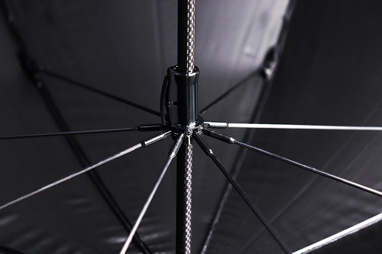「Aufo Plus」の骨は全部で8本、親骨から中棒まですべてカーボンファイバーでできているので、強風にも負けない強度を持っています。