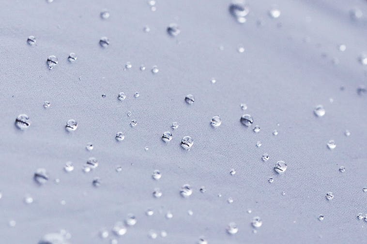 380Tに達した生地は、生地の表面に水が付着しにくくなり、雨が落ちた瞬間に水滴になり、そのまま地面に落ちます。