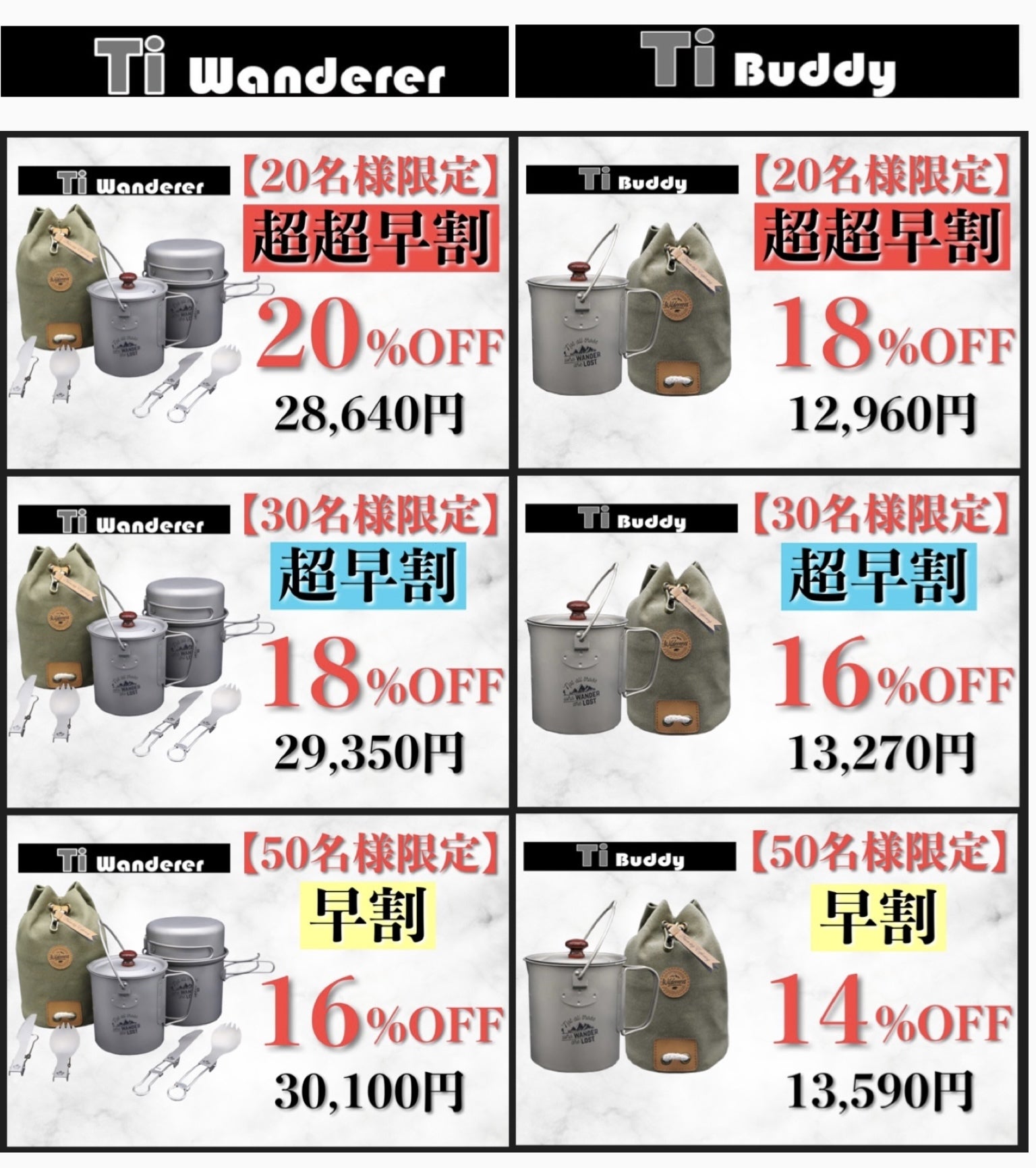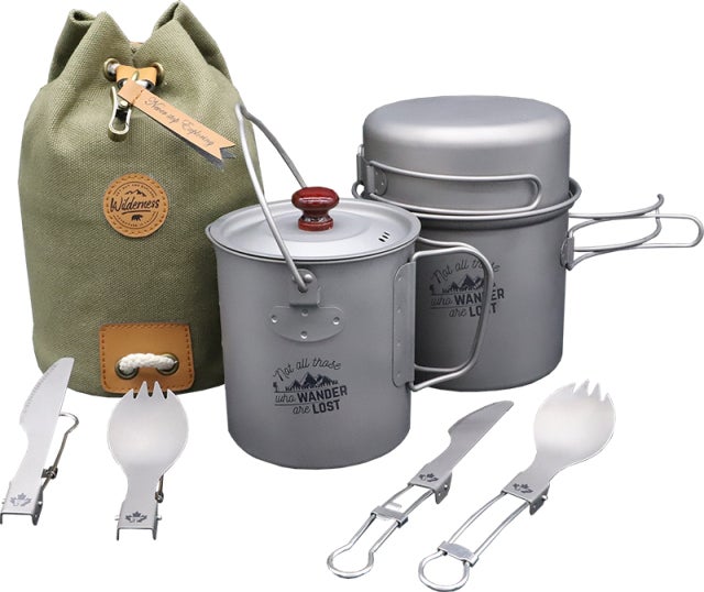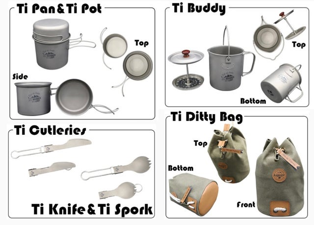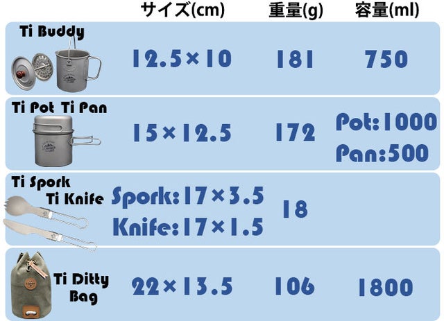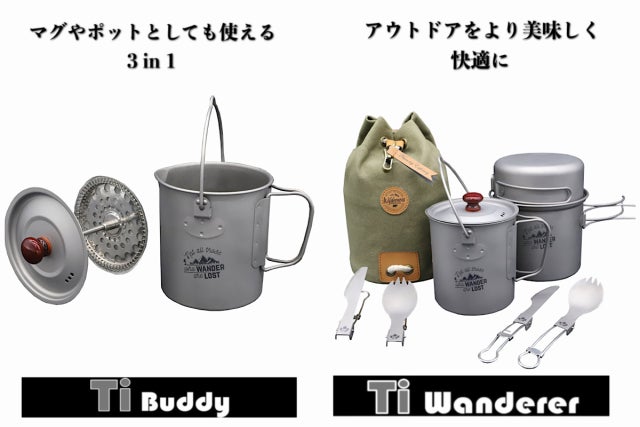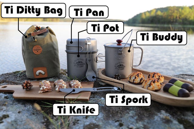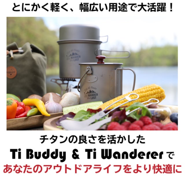 Ti Buddyにフライパン・ポット・折り畳みナイフ&スプーンをセットにした【Ti Wanderer】も登場!!