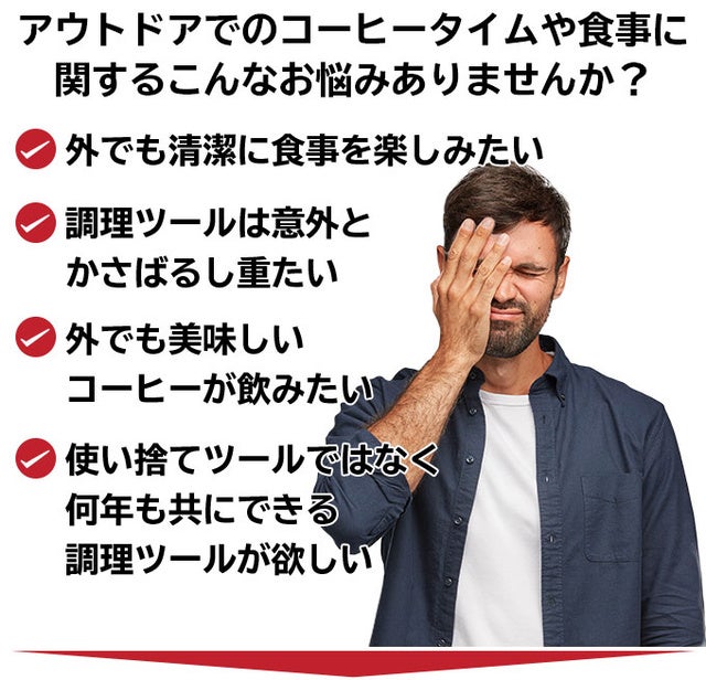 家庭で用いるフレンチプレスはガラス製が一般的。でもアウトドアに持って行くには割れる心配も…