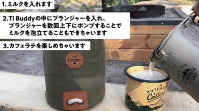 ラテを楽しむことも♩プランジャーを数回ポンプすることでミルクを泡立てることも可能!