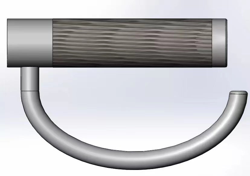 現在、ハンドル形状の最終調整が終わり、バータイプで使用した際にバンドをかけやすいようにフックの開口部とハンドル部分を少しずらした幅に修正しました。