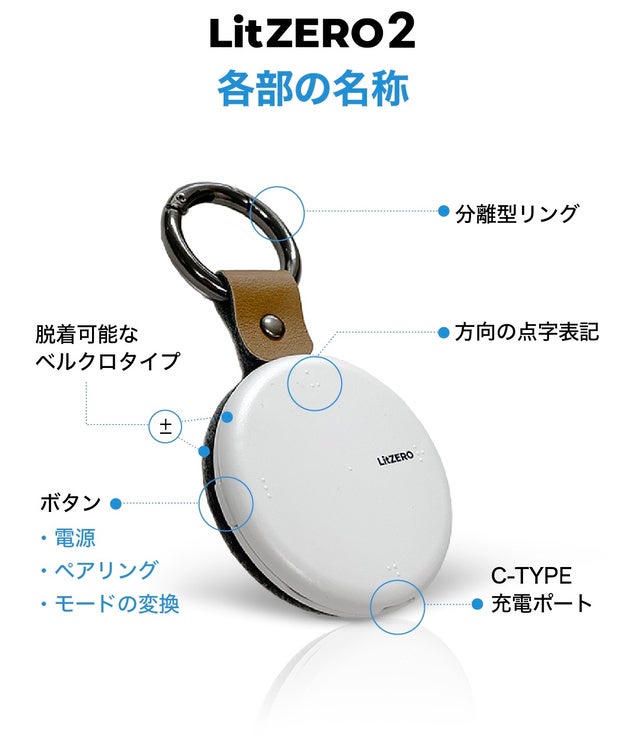 「LitZERO 2」はスマホ、タブレット、PC操作に使えるリモートコントローラーです。キーホルダー感覚で持ち歩きながら、音楽や動画再生からマウス操作まで遠隔でデバイスを操ることができます。音楽、動画再生や電子書籍のページめくり、マウス操作までこれひとつであらゆる場面に対応します。ボタンとセンサーのタッチ操作の組み合わせで、複雑な機器の動作もこなせるように作られています。
