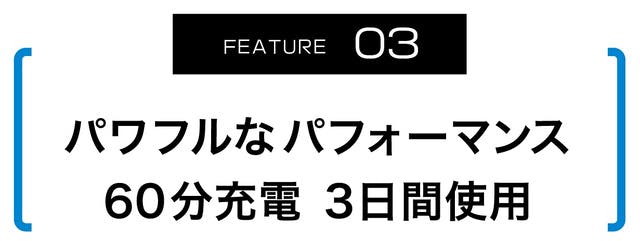 一度使うと手放せないから、多様な環境で使っていただけるよう使用時間も長〜くしました。60分の充電で3日間※使用できるため、日々バッテリー切れを心配する必要もありません。