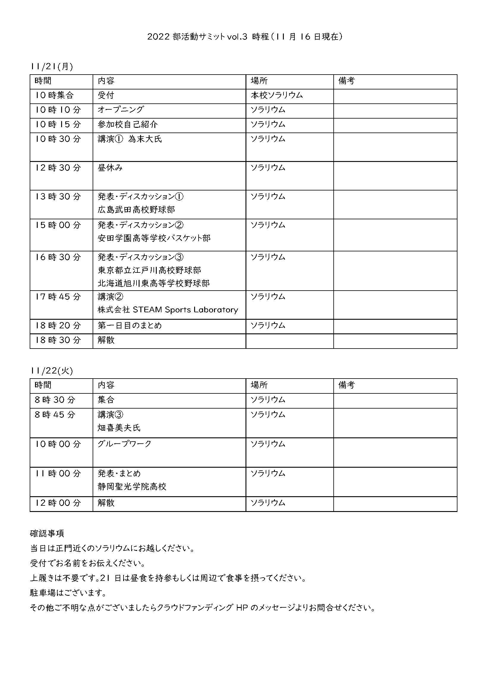 当日の時程を更新いたしました。ご確認をお願いいたします。なお、当日の見学については見学権のついたご支援(Tシャツ+見学権)をしていただいた方のみとなります。ご理解の程お願い申し上げます。引き続き拡散・ご支援の程よろしくお願いいたします。