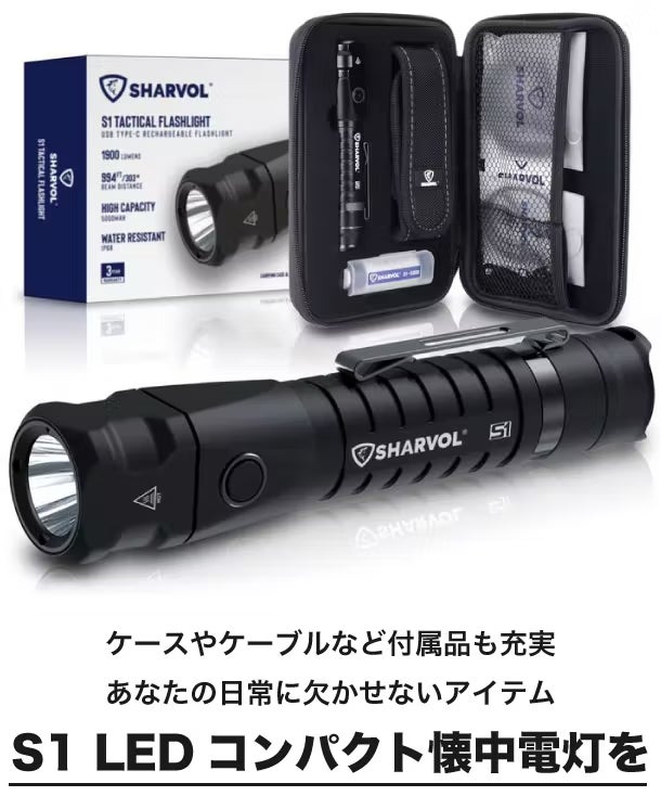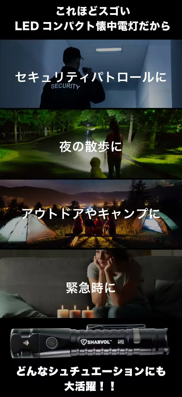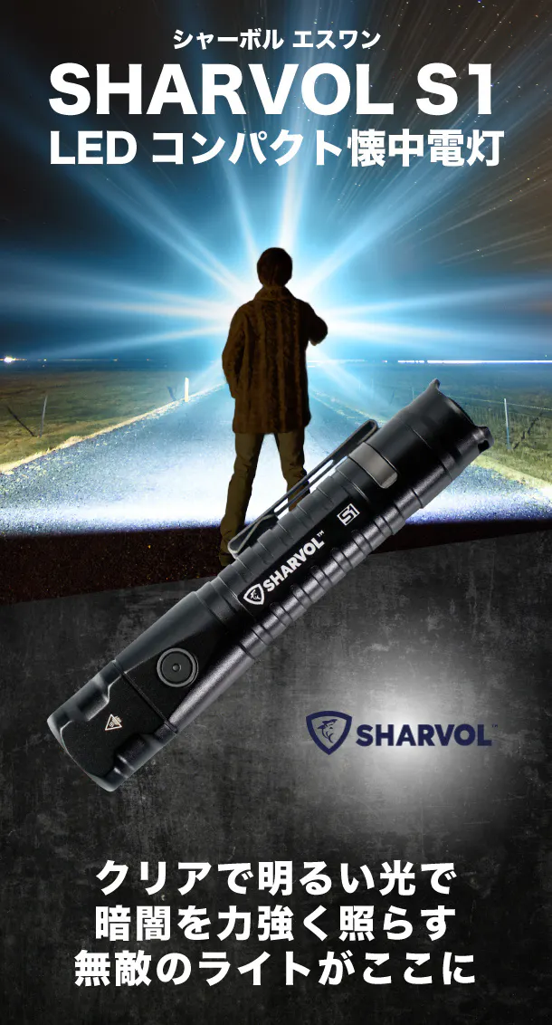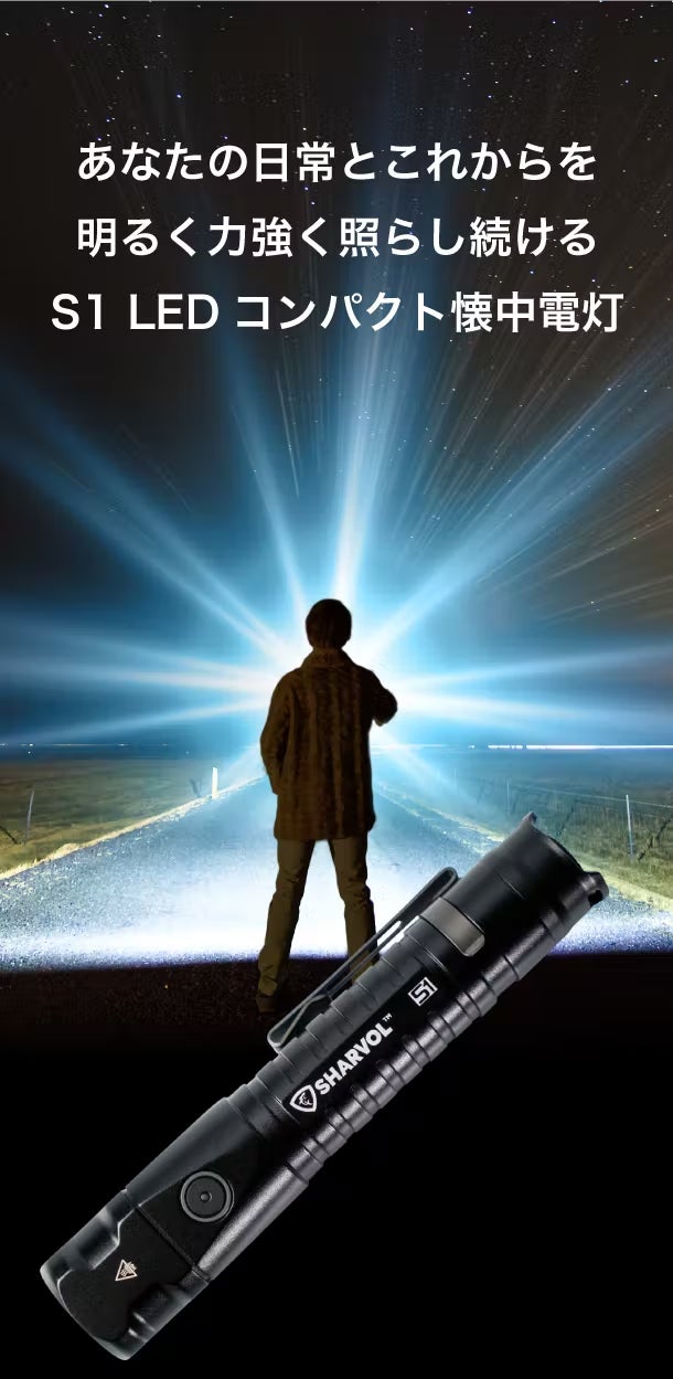日常で使う携帯電話のライト機能や懐中電灯で少し暗いなと感じたことはありませんか?「SHARVOL S-1」はコンパクトながら高出力のLED懐中電灯です。指先で5段階の調光が可能、アウトドア、キャンプ、夜道などシーンに合わせてユーザーの活動を強く後押ししてくれます。