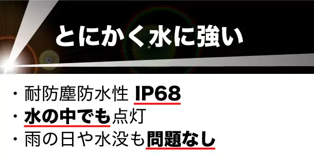 防水機能を生かして、雨の日の夜道などでも問題なく使用することができます。