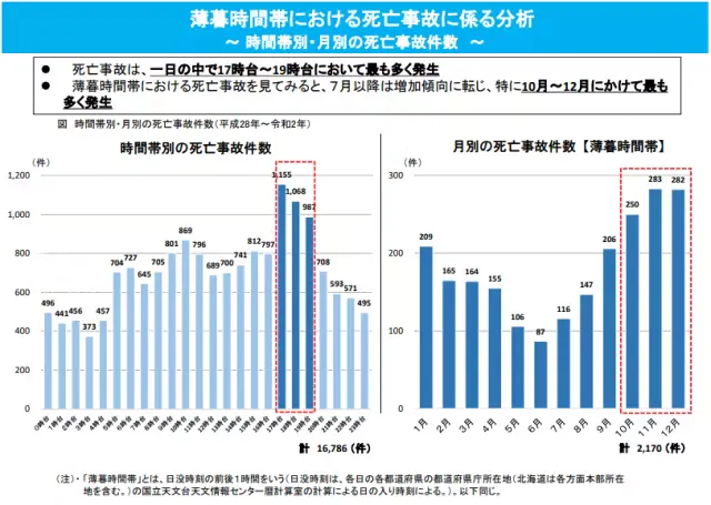 夕方に薄暗くなってくる薄暮の時間。「まだ、見える。」と思いがちなこの時間が最も危険な時間帯です。