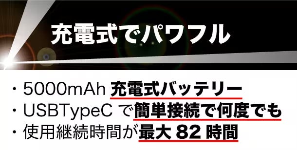 〇バッテリータイプ:5000mAh 充電式21700バッテリー連続使用時間:82時間充電方法: USB Type-C充電時間:6時間