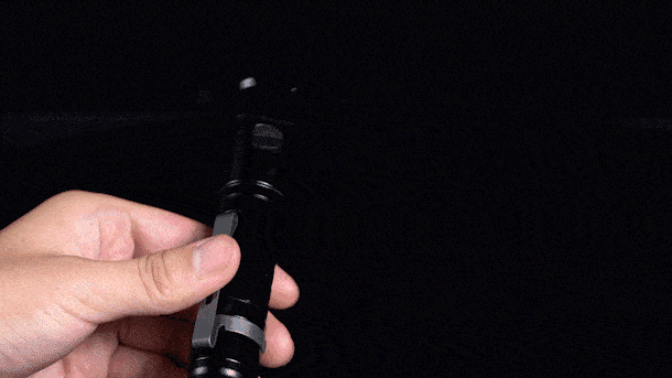 テールスイッチは「カチッ」とするまで押すと常時点灯となりますが、半押し状態でもほぼ無音のまま点灯させることが可能で、半押しを解除すると消灯といった操作も可能です。再点灯時は前回の点灯レベルを引き継ぎます。テール部はバッテリーをセットするネジ蓋にもなっており、完全に最後まで締めることで点灯しますが、この部分を少し緩めると点灯しなくなるので、少し回しておけば誤点灯を防ぐことができます。