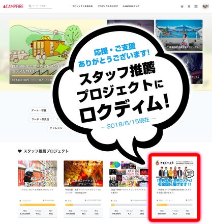 キャンプファイヤーのTOPページにある「スタッフ推薦プロジェクト」に選ばれました!(6/15現在)