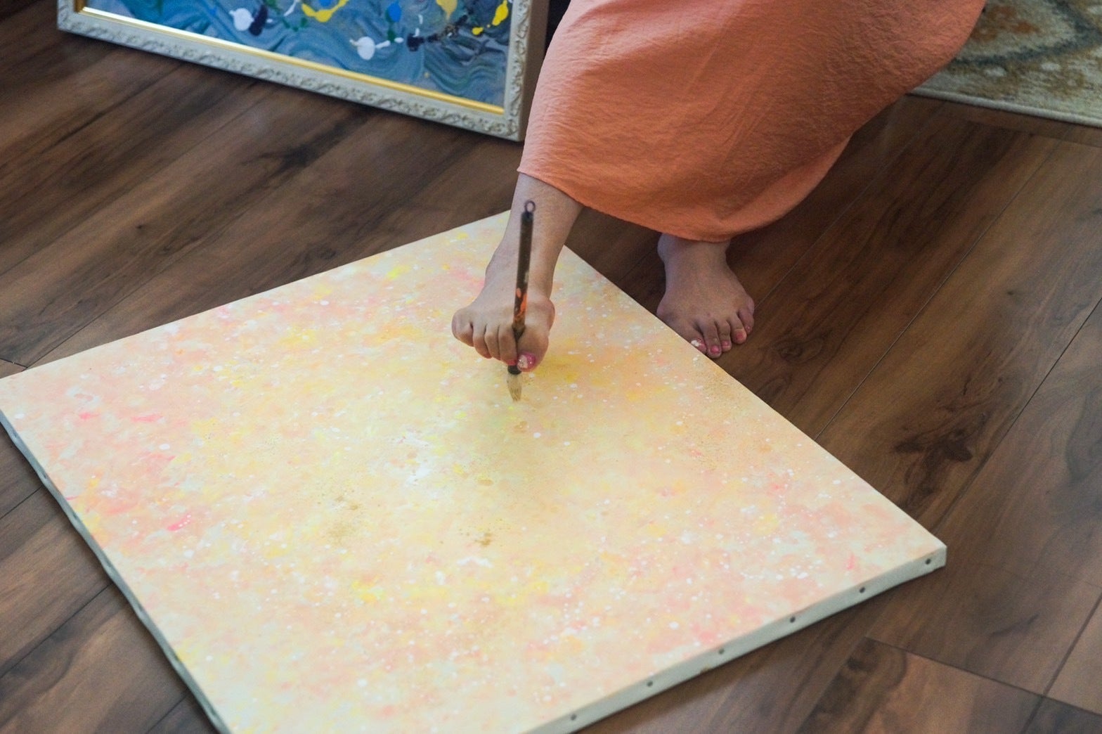 本来の自分を取り戻すアートセラピーにて自分らしく生きることを取り戻した時、偶然にも足で描くという手法に出会いました。