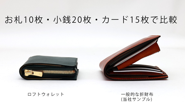 今回の「ロフトウォレット」は二つ折り財布をベースにした、コンパクトウォレットです。