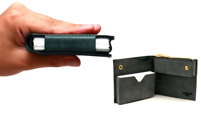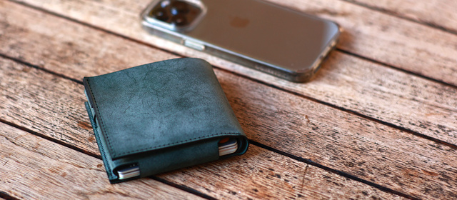 二つ折り財布も「極小・極薄」をテーマにしたアイテムが増えてきており、カードが入るギリギリを攻めるデザインも珍しくありません。