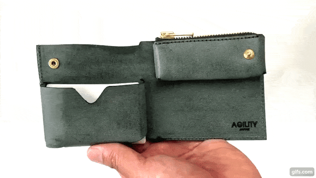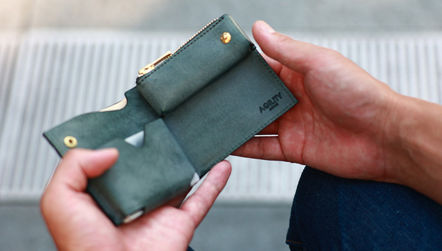 届きました。歴代AGILITY愛好者 アルジャン アルジャンⅡを愛用して今回の利用すると・・・・ うーん!残念! ・ポケット部分に入れるカードが少量だとがばがばになる ・小銭がじゃらじゃら動くので音がする ・思った以上に最初から厚みがある。アルジャンは入れた分だけ大きくなるからいい。 ・カード類がたっぷり入れると出しにくい ・ファスナー部分の取っ手ないと不便 ・革の加工をもう少し・・ 良い点もあります。 お札はおらなくて良いので、良い感じ 領収書あたりがうまく整理できるとよいが仕方ない。 たぶん、小銭は出しやすい(じゃらじゃらしますが)