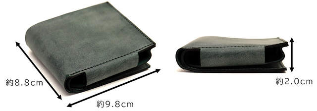 2層式にする事で、厚みを軽減し、「小さく、シンプル」にまとめた、革の魅力が詰まった2つ折財布です。