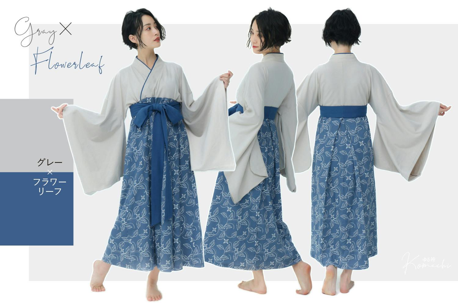 小町とは評判の美しい娘。「○○小町」のように美しい女性の呼び名として使われるというところから、華やかな花モチーフやトレンド感のあるチェック柄を採用、レディースのみの展開となります。また初めての試みである袴部分にプリントを施しました。今までとはまたひと味違った装いをお楽しみいただけます。