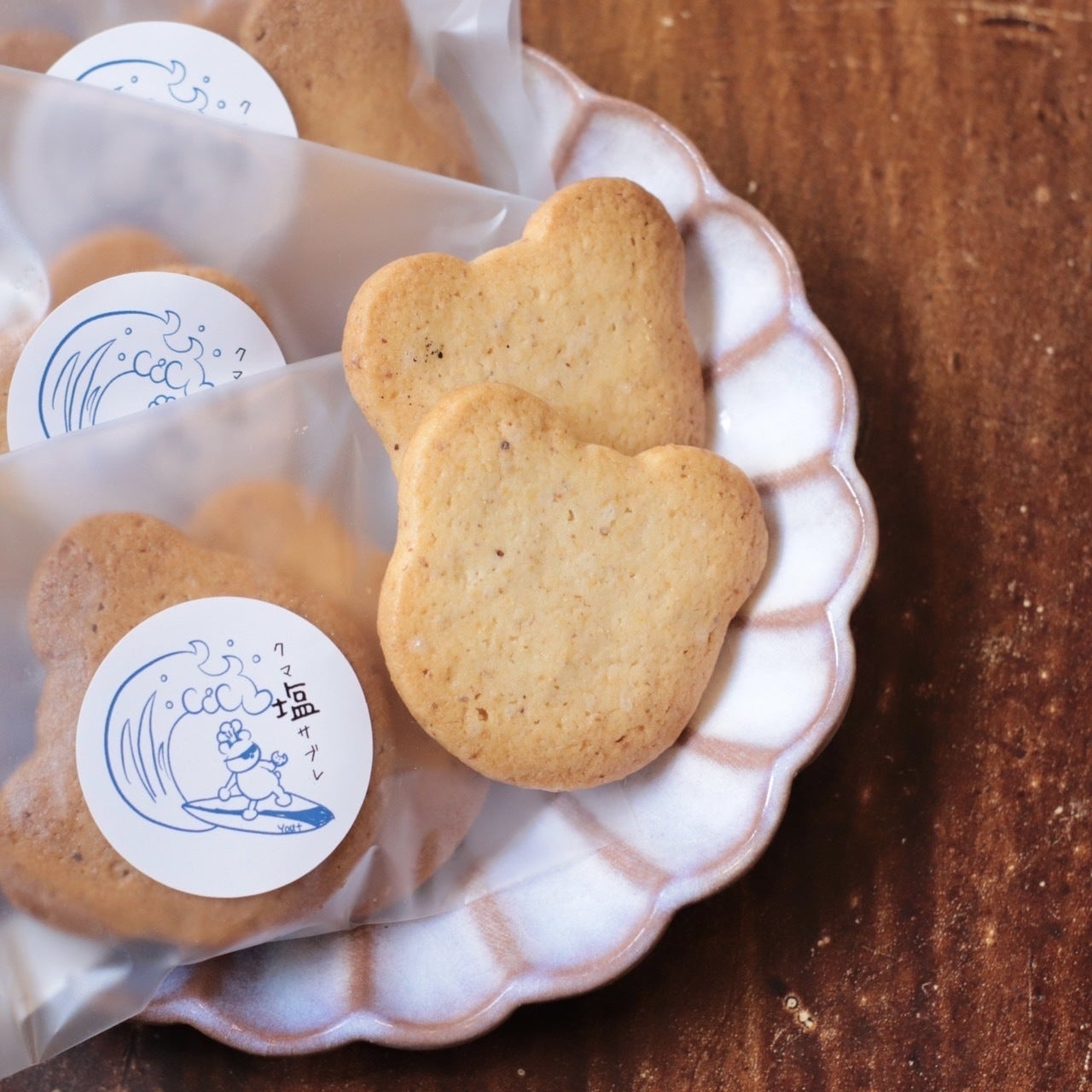当店人気は『ざっしょのクマ塩サブレ』、新商品は『ざっしょのクマ塩マドレーヌ』です♪