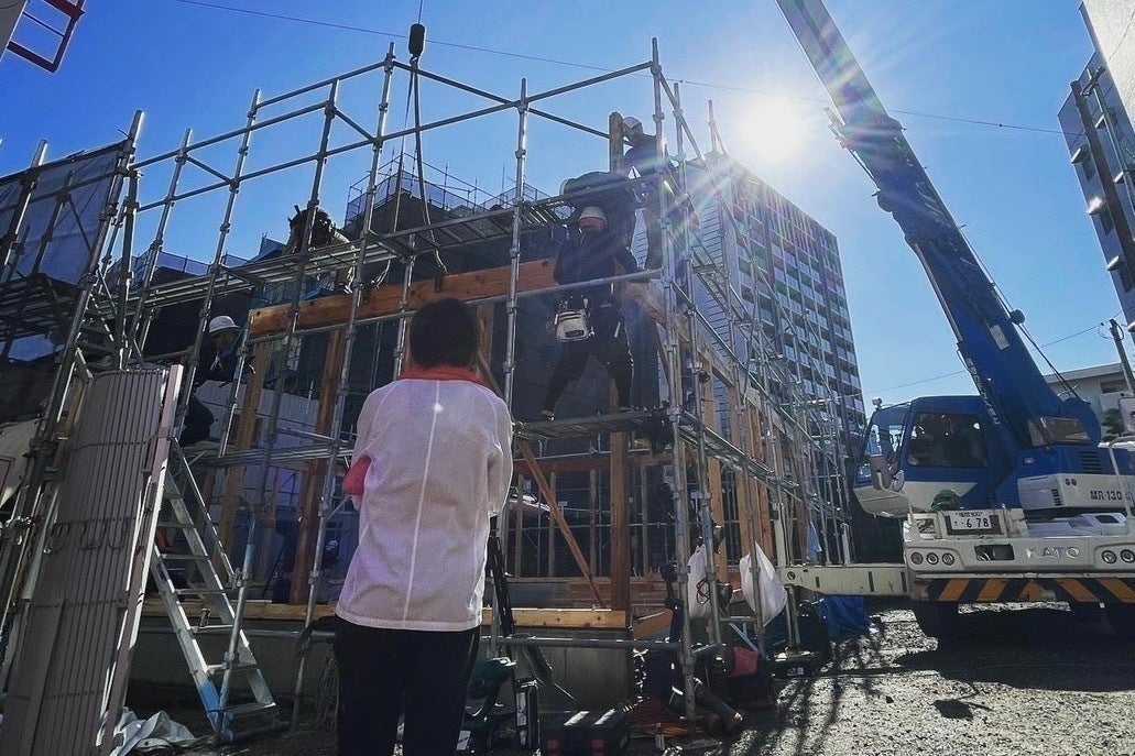 2022年8月クッキー配りで盛り上がった棟上げの日