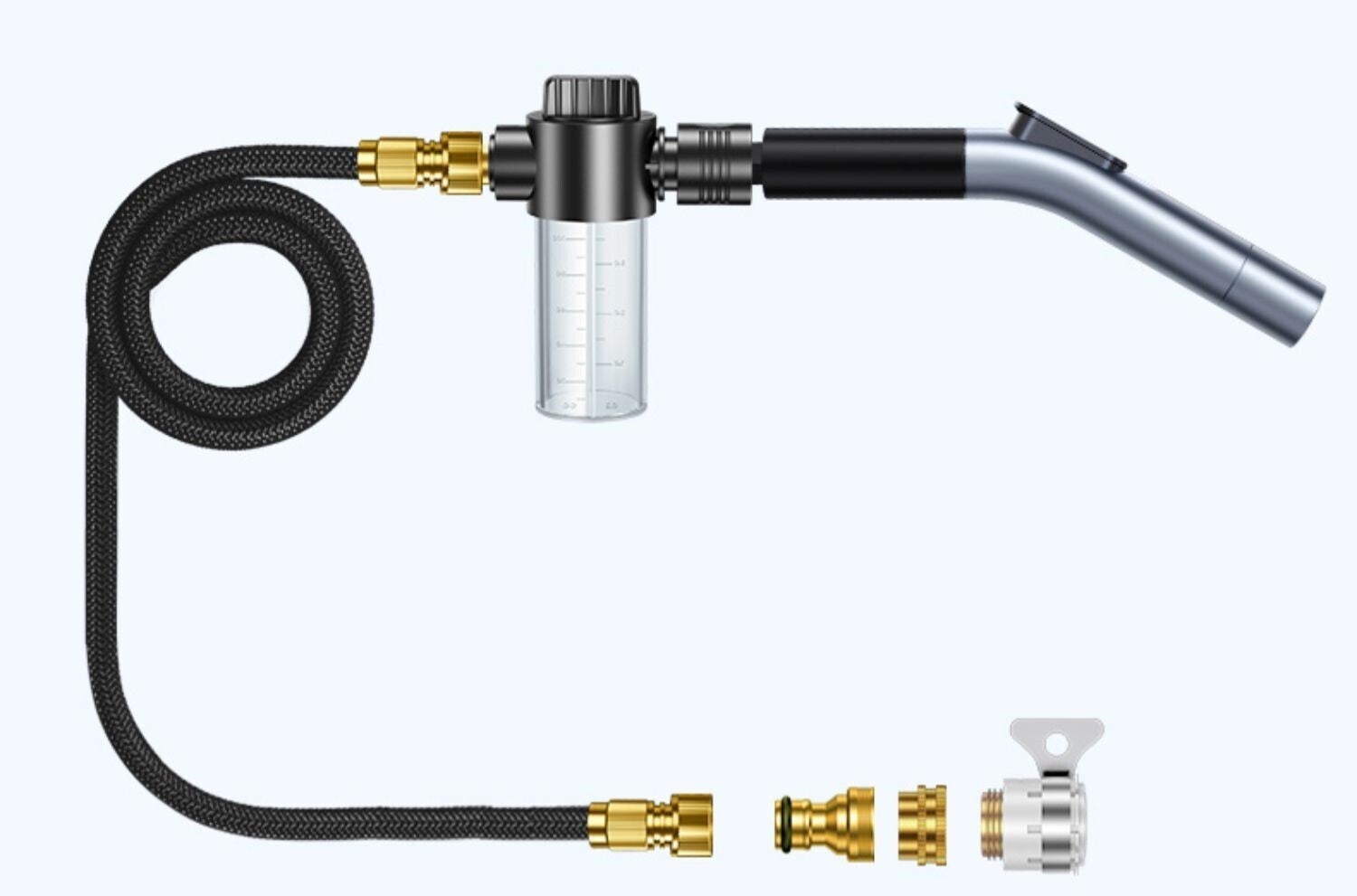 アタッチメントとして洗剤ボトルが付き、洗車や自宅清掃などには洗剤を入れて噴射、非常に便利!